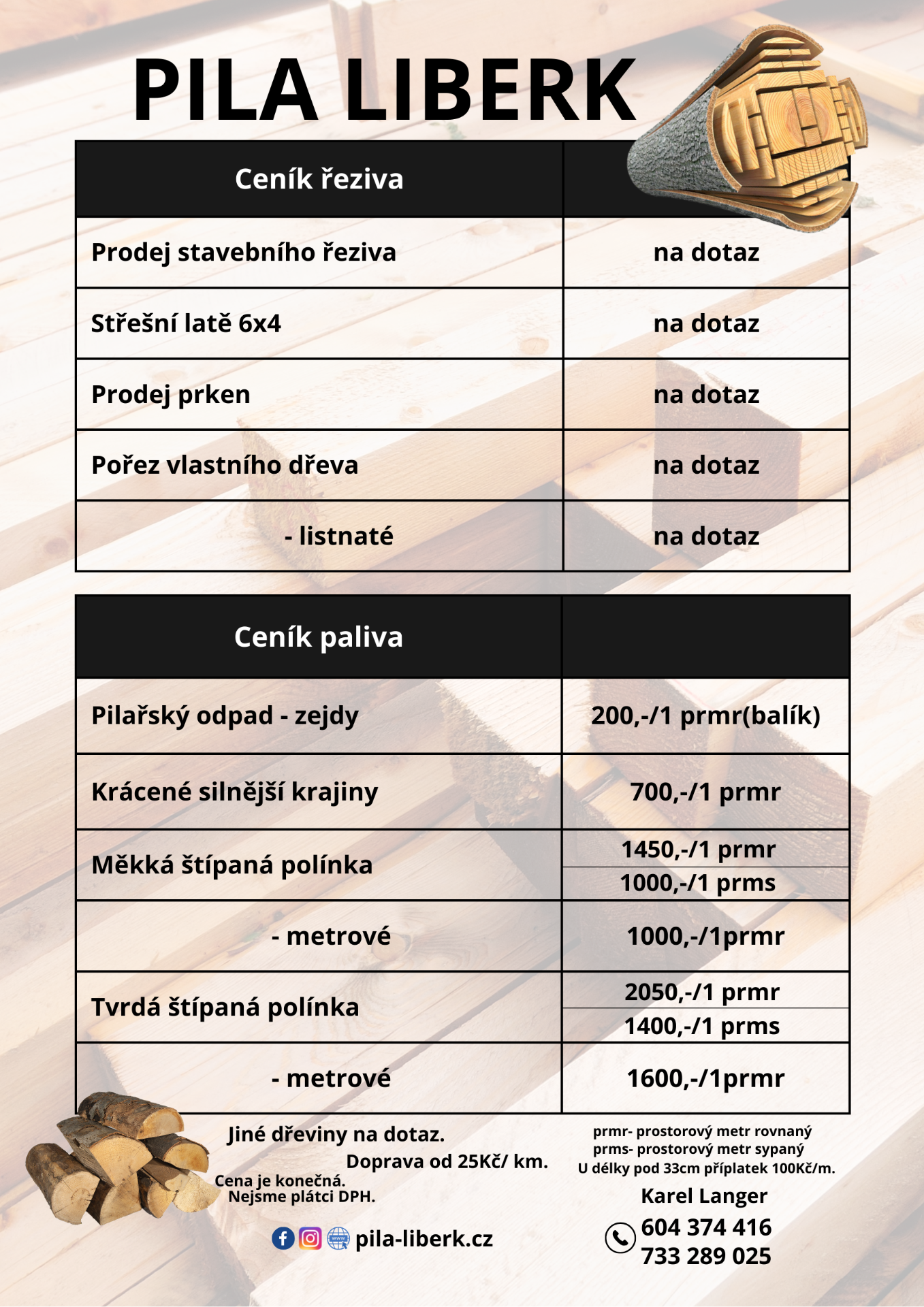 Cena dopravy dle vzdálenosti a množství odebíraného dřeva. Neváhejte nás kontaktovat.